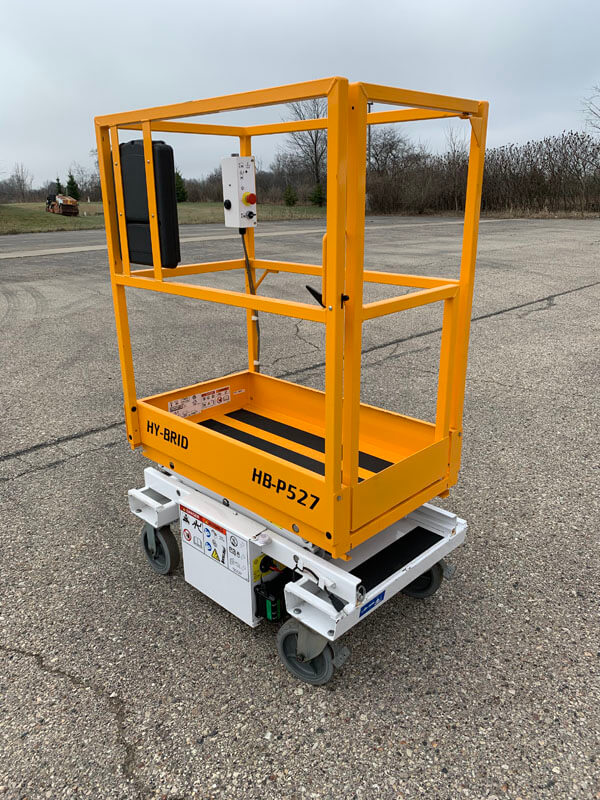 Description:Model closeout - NEW Hy-Brid Lifts HB-P527 push-around scissor lift is the perfect alternative to eliminate ladders in shops, warehouse, and storage rooms with its small footprint. This unit is designed for working heights up to 11 ft with its 5 ft platform height. 1 year parts warranty included. This 2017 HY-BRID LIFTS Push-Around lift is in New condition with a total of 0 hours of operation. The machine offers a working height of 11 ft and a platform height of 5 ft, with a platform capacity of 500 lbs. This lift has the following features for added versatility: Power to platform = No, Deck Extension = No. The compact dimensions (41 in length, 63.6 in height) and weight of 575 lbs make it suitable for a variety of job sites. For further details or to arrange a viewing, please refer to the images or contact us directly